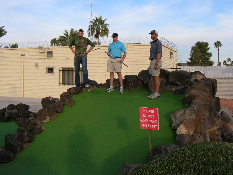 We had Kyle Davies, Hoch, Banny, and Gil Meche join me on the links. These guys are hilarious. Banny and Davies showed up together all decked out to play Pebble Beach. They brought their own putters and balls. Meche showed up with his custom putter and Nike balls as well. My man Luke though…he’s old school. He said something like “when I show up to play putt-putt I expect to use a rusty iron rod and an orange ball.” Classic.